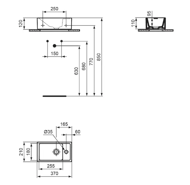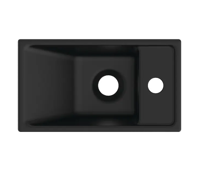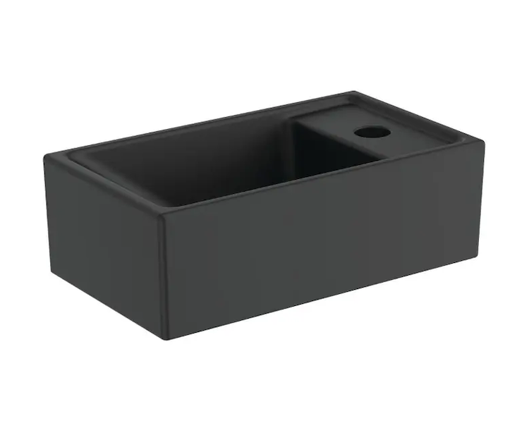 Ideal Standard Tempo - Umývátko 37x21 cm, bez přepadu, otvor pro baterii vlevo, černá E2113V3 Expedice do 3-4 týdnů |