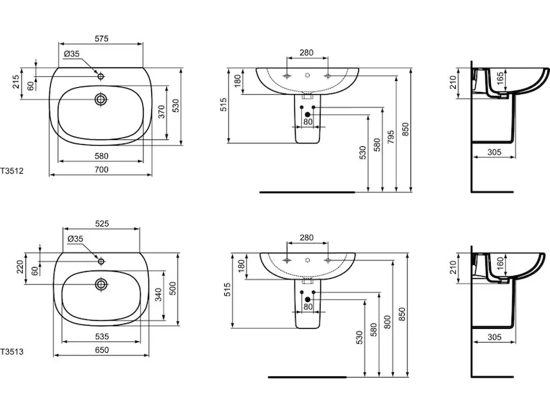 Ideal Standard Tesi - Polosloup 29x17x34 cm, bílá T351801