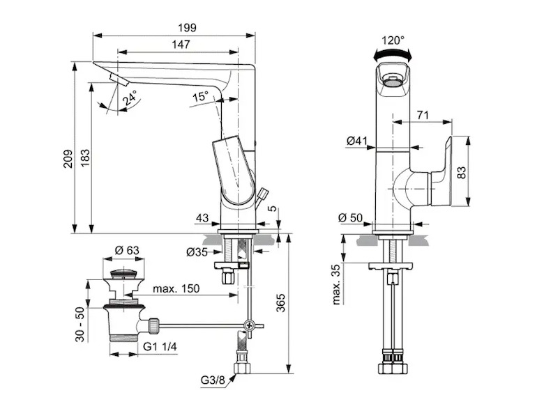 Ideal Standard Tesi - Umyvadlová baterie s výpustí a otočným výtokem, chrom A6754AA