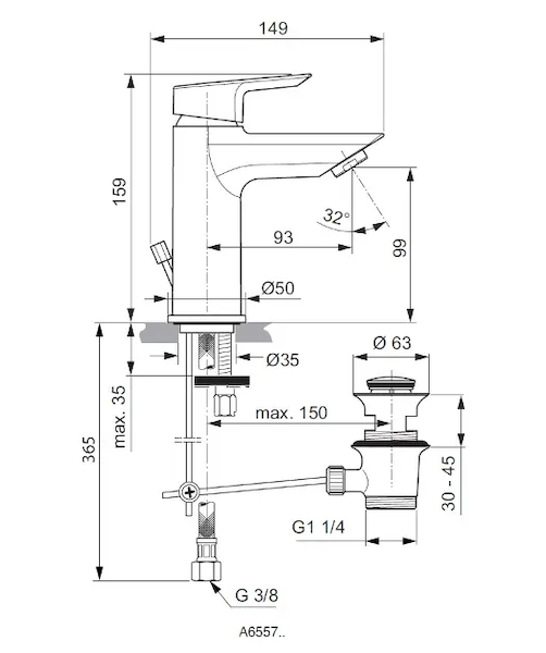 Ideal Standard Tesi - Umyvadlová baterie s výpustí, BlueStart, chrom A6558AA