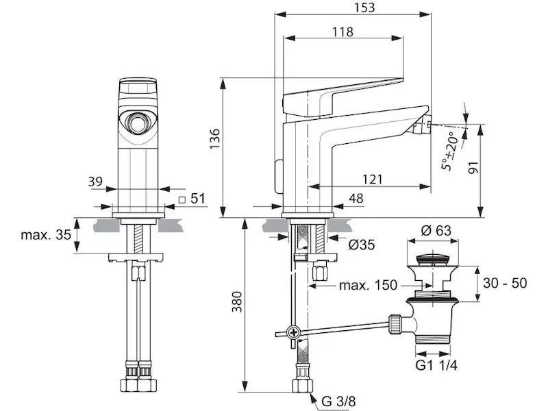 Ideal Standard Tonic II - Bidetová baterie s výpustí, chrom A6336AA