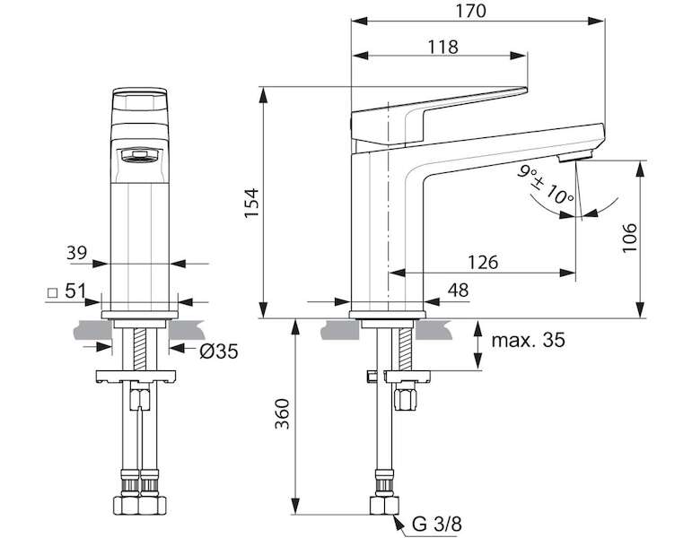 - nastavitelný směr proudu vody v úhlu 9° +/- 10°