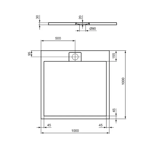 Čtvercová sprchová vanička