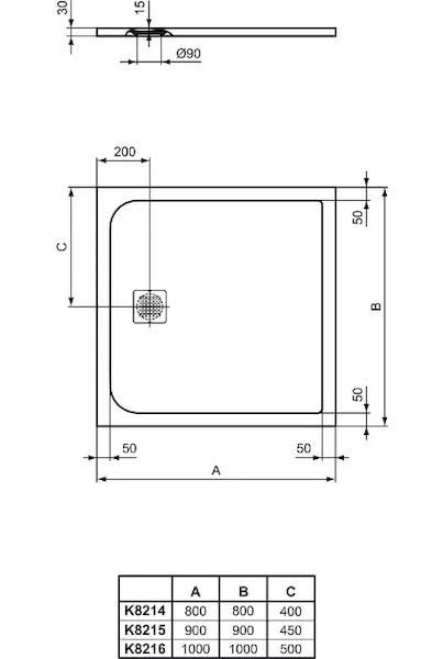 - rozměry: 800 x 800 mm