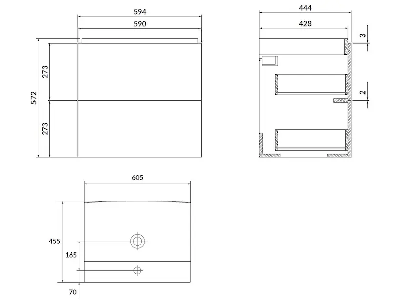 kielle Arkas I - Skříňka včetně umyvadla 60x57x44 cm, 2 zásuvky, šedá 50011S62