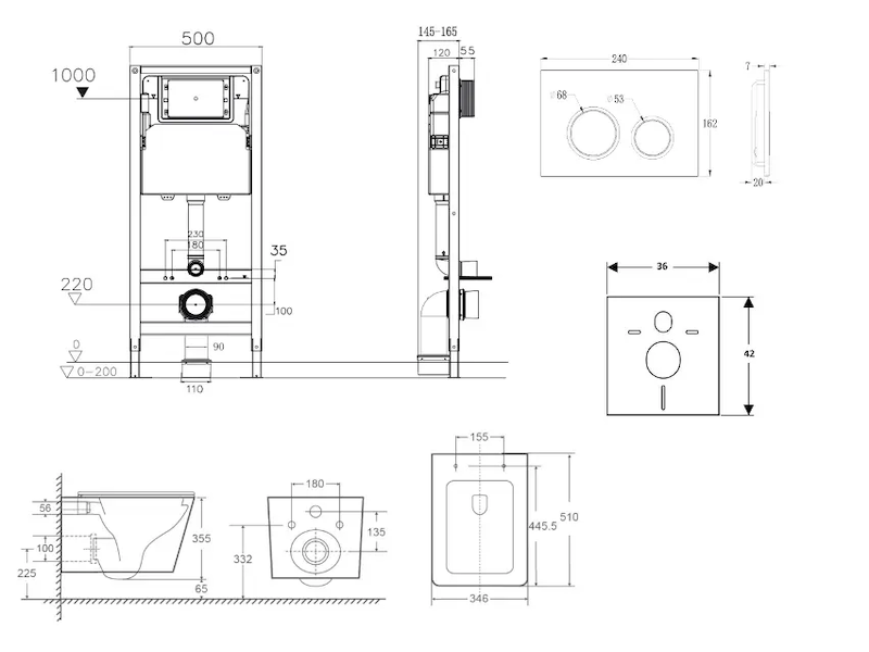 - Pro montáž závěsného WC s připojovací roztečí 180 mm