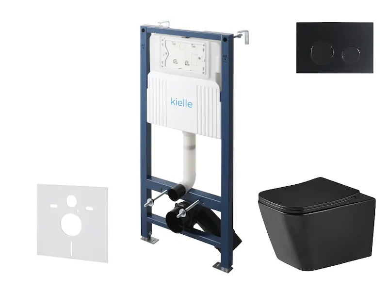 kielle Genesis New - Set předstěnové instalace, klozetu Arkas I, Vortex Rimless+, sedátka softclose a tlačítka Gemini New III, matná černá 30528SS96 Skladem u dodavatele > 10 ks |