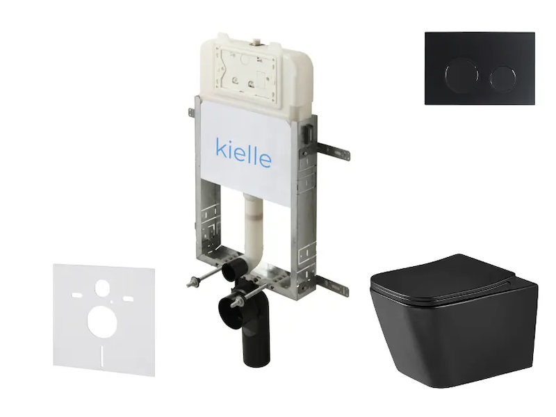 kielle Genesis New - Set předstěnové instalace, klozetu Arkas I, Vortex Rimless+, sedátka softclose a tlačítka Gemini New III, matná černá 30528SZ96 Skladem u dodavatele > 10 ks |