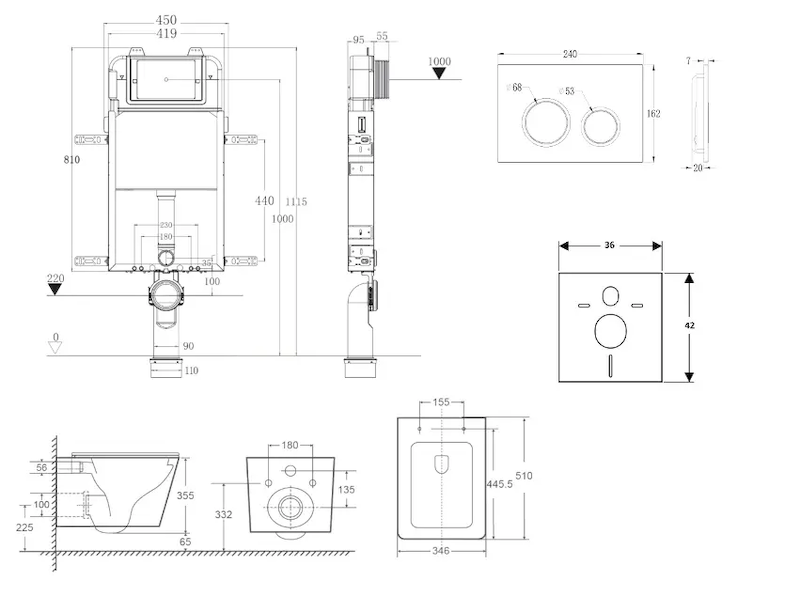 - Pro montáž závěsného WC s připojovací roztečí 180 mm