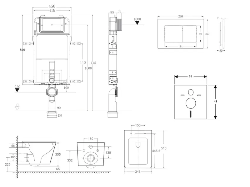 - Pro montáž závěsného WC s připojovací roztečí 180 mm