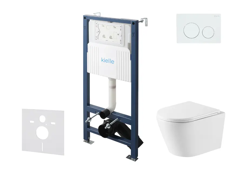 kielle Genesis New - Set předstěnové instalace, klozetu Nefia, Vortex Rimless+, sedátka softclose a tlačítka Gemini New I, lesklá bílá 30528SS46