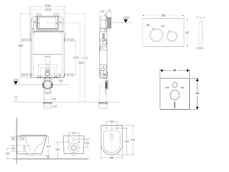- Pro montáž závěsného WC s připojovací roztečí 180 mm