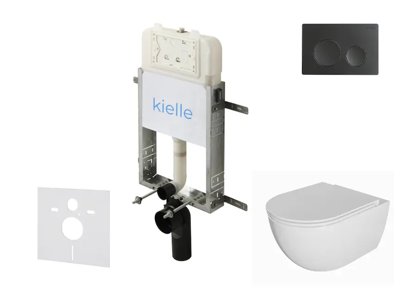 kielle Genesis New - Set předstěnové instalace, klozetu Oudee, Rimless, sedátka softclose a tlačítka Gemini New I, matná černá 30528SZ03