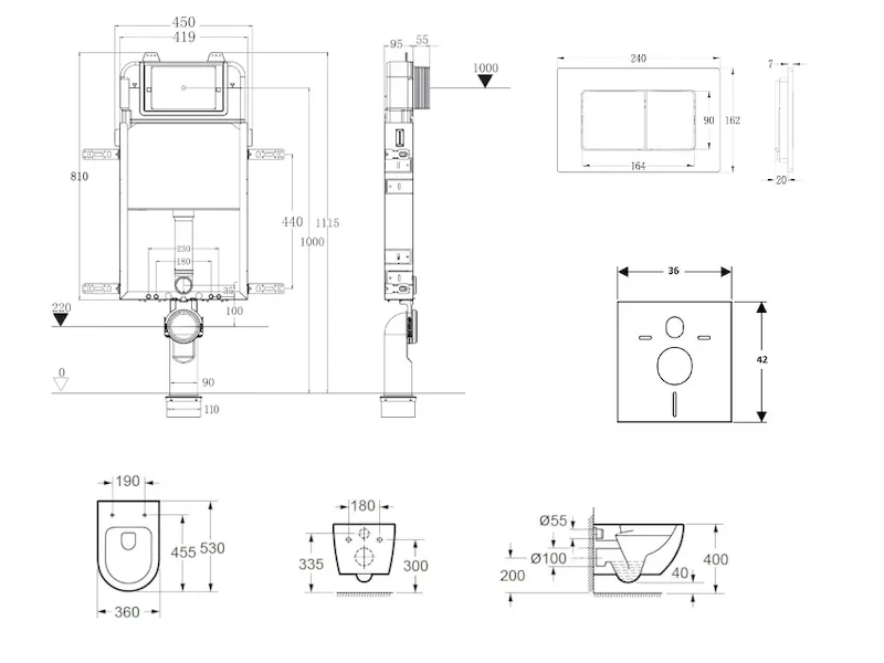 - Pro montáž závěsného WC s připojovací roztečí 180 mm