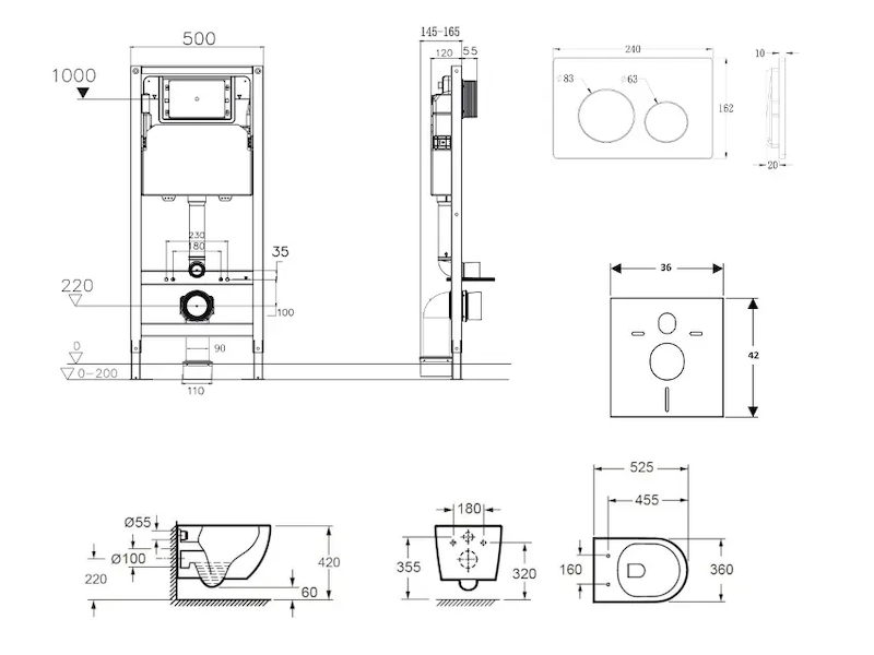 - Pro montáž závěsného WC s připojovací roztečí 180 mm