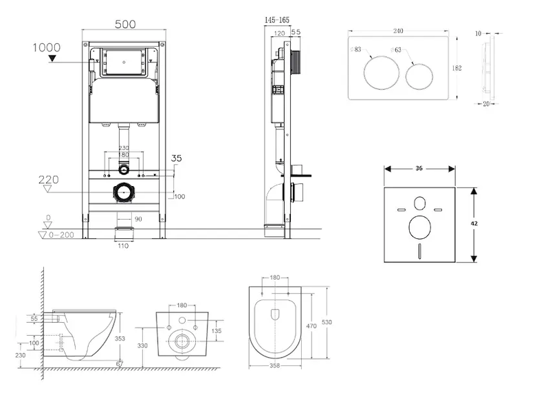 - Pro montáž závěsného WC s připojovací roztečí 180 mm