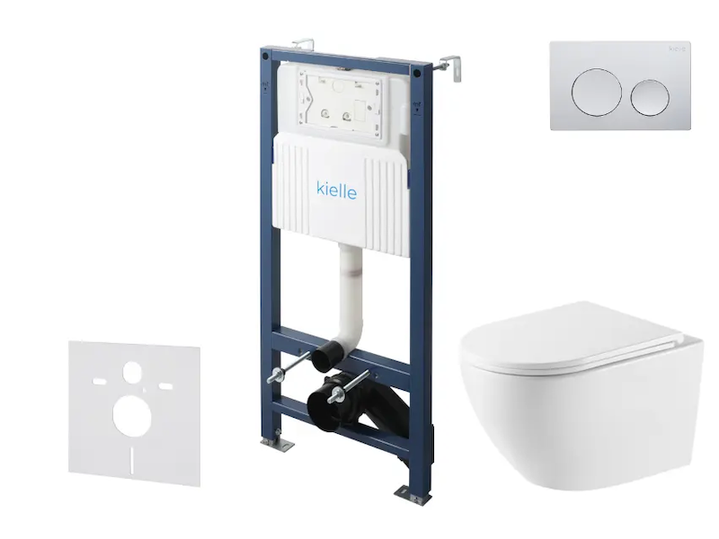 kielle Genesis New - Set předstěnové instalace, klozetu Oudee, Vortex Rimless+, sedátka softclose a tlačítka Gemini New I, lesklý chrom 30528SS56