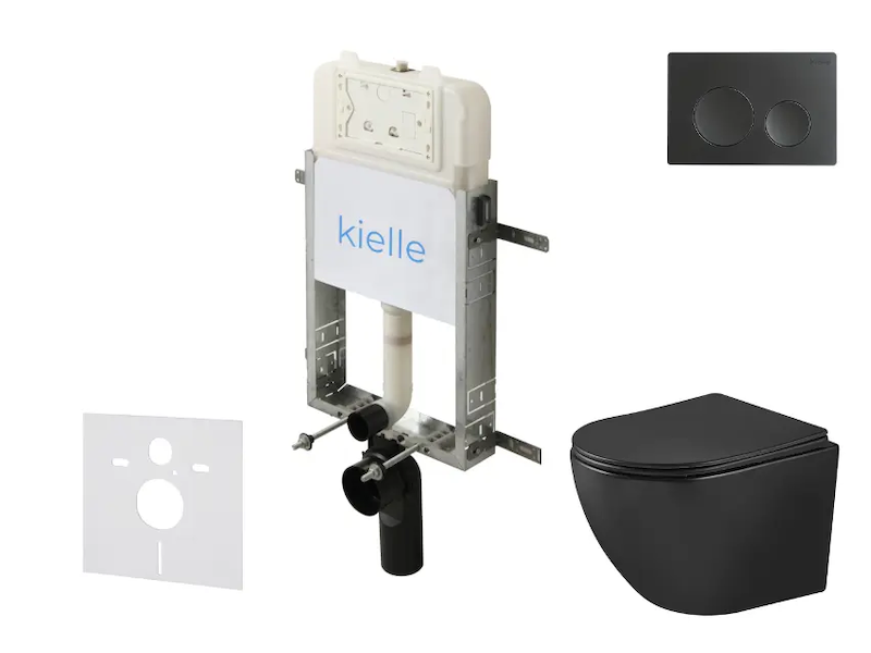 kielle Genesis New - Set předstěnové instalace, klozetu Oudee, Vortex Rimless+, sedátka softclose a tlačítka Gemini New II, matná černá 30528SZ92 Skladem u dodavatele > 10 ks |
