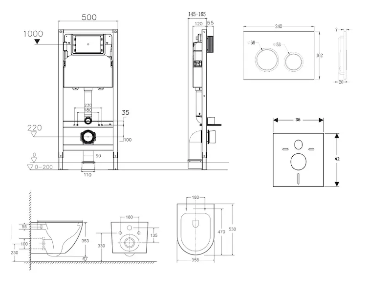 - Pro montáž závěsného WC s připojovací roztečí 180 mm
