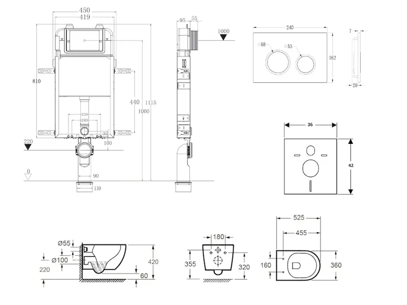 - Pro montáž závěsného WC s připojovací roztečí 180 mm