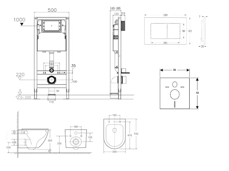 - Pro montáž závěsného WC s připojovací roztečí 180 mm