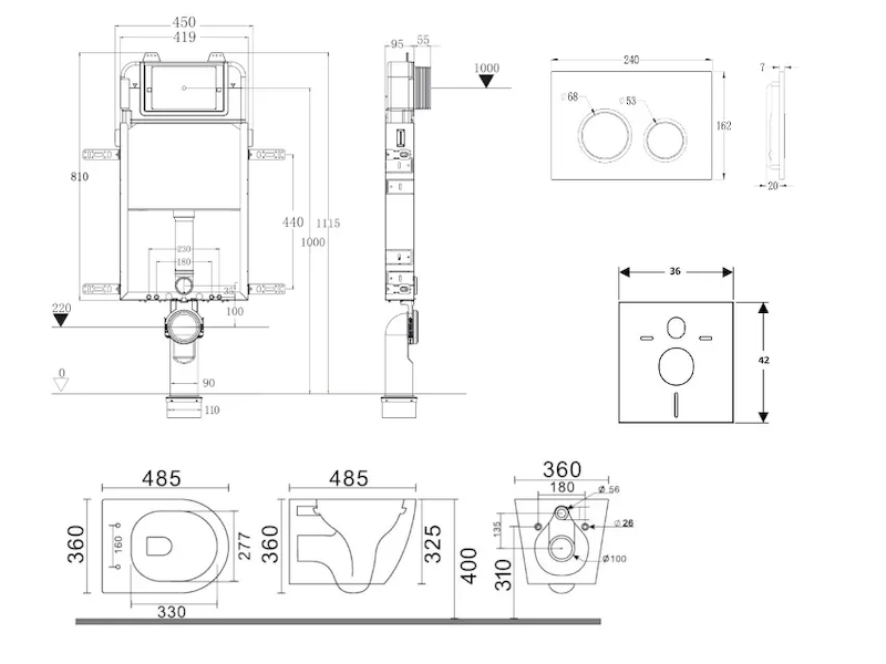 - Pro montáž závěsného WC s připojovací roztečí 180 mm