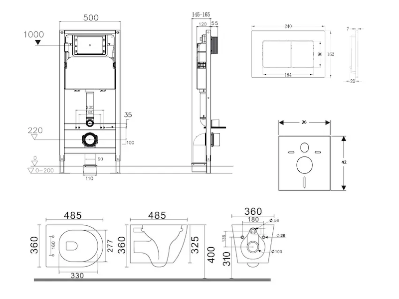 - Pro montáž závěsného WC s připojovací roztečí 180 mm