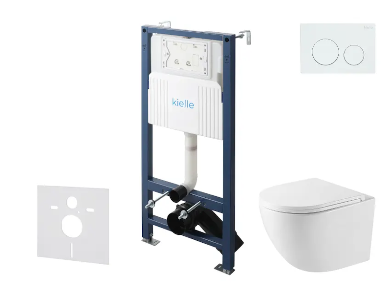 kielle Genesis New - Set předstěnové instalace, kompaktního klozetu Oudee, Vortex Rimless+, sedátka softclose a tlačítka Gemini New I, lesklá bílá 30528SS37