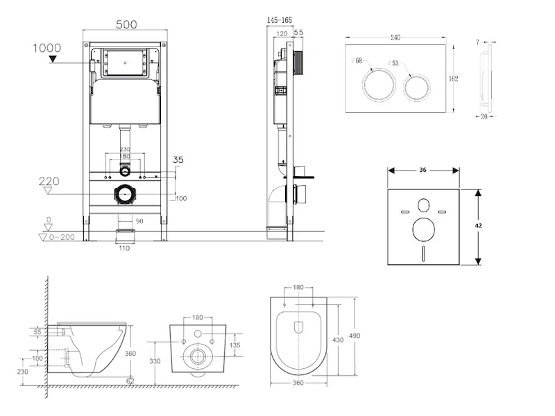 - Pro montáž závěsného WC s připojovací roztečí 180 mm