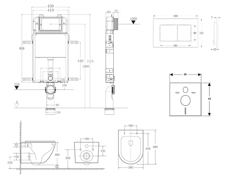 - Pro montáž závěsného WC s připojovací roztečí 180 mm