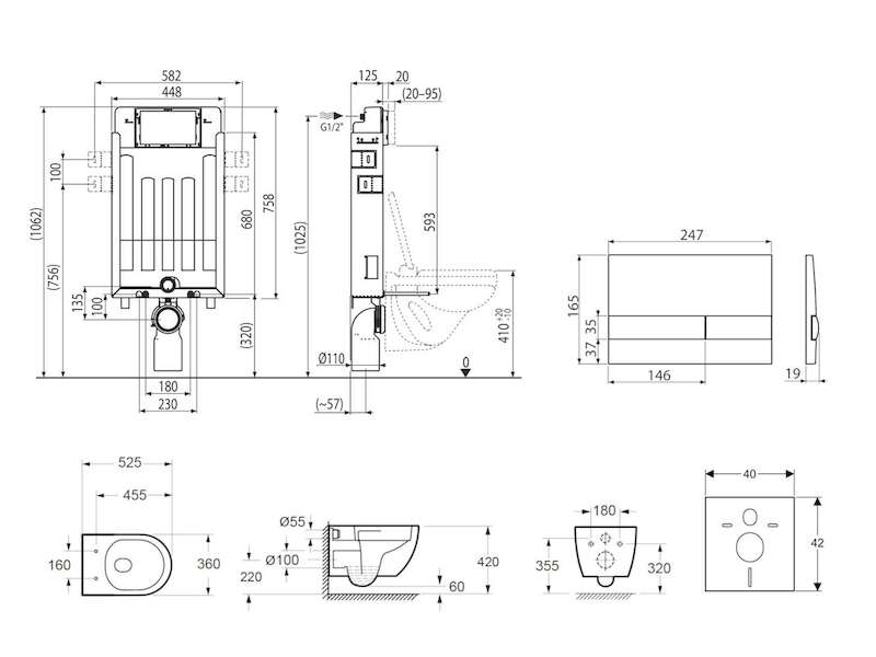 - Fixační set pro uchycení WC mísy: závitová tyč M12 – 2 ks, podložky – 4 ks, krytka – 2 ks, matice – 2 ks, chránička závitu – 2 ks