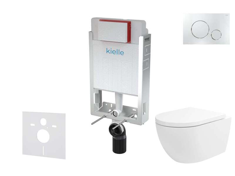 kielle Genesis - Set předstěnové instalace, klozetu Oudee Vortex, sedátka softclose a tlačítka Gemini II, lesklý chrom 30505SZ83
