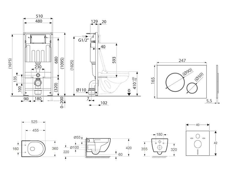 - Pro montáž závěsného WC s připojovací roztečí 180 mm