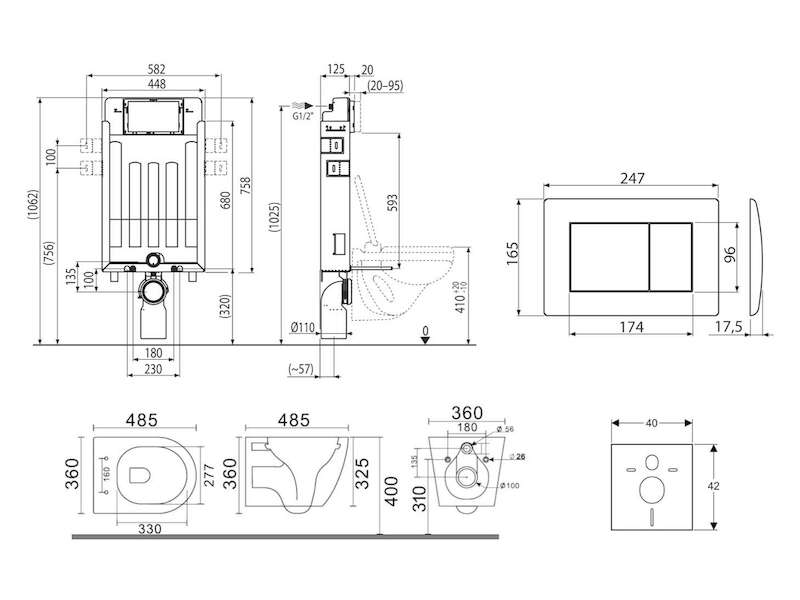- Fixační set pro uchycení WC mísy: závitová tyč M12 – 2 ks, podložky – 4 ks, krytka – 2 ks, matice – 2 ks, chránička závitu – 2 ks
