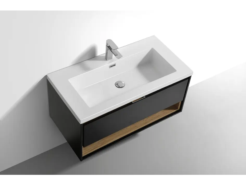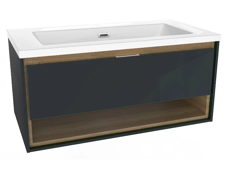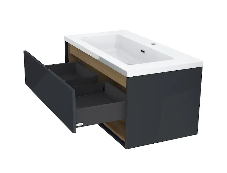 kielle Meara - Skříňka s umyvadlem 90 cm, tmavě šedý lesk/tmavý dub 50026S906
