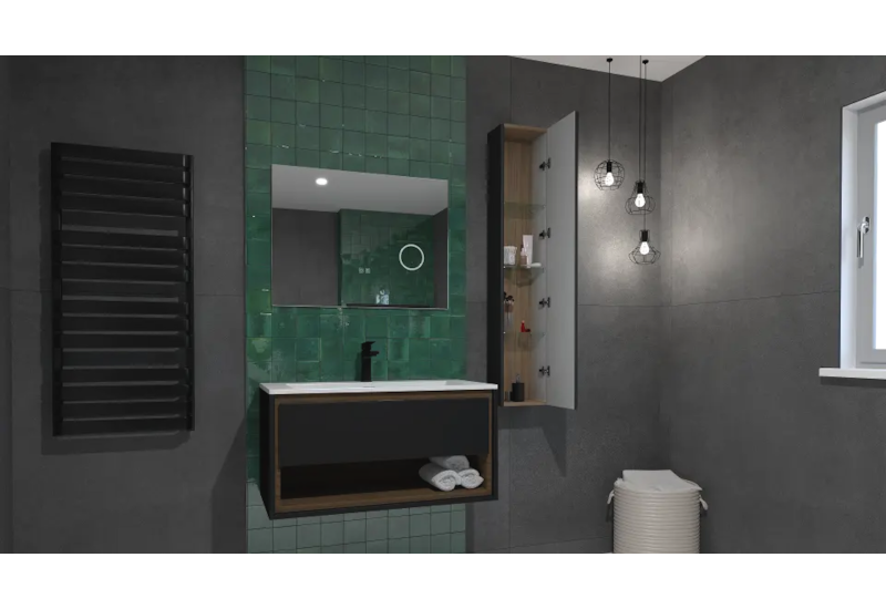 kielle Meara - Skříňka s umyvadlem 90 cm, beton/matná černá 50026S905 Skladem u dodavatele > 10 ks |