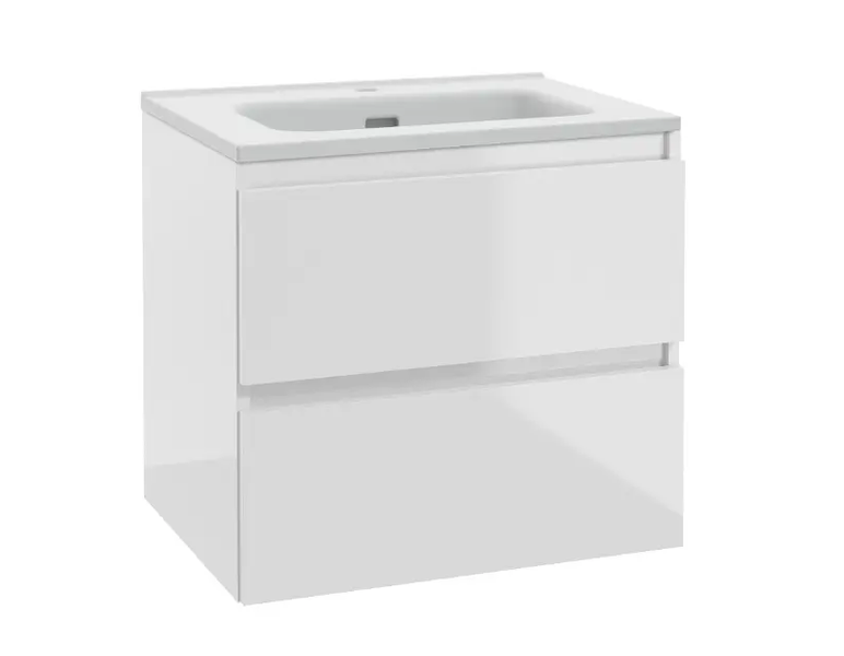 kielle Nefia - Skříňka včetně umyvadla, 60x55x46 cm, 2 zásuvky, lesklá bílá 50027S620