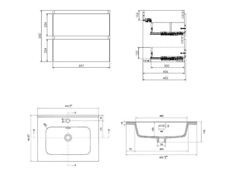 - rozměry skříňky: šířka 600 mm, hloubka 460 mm