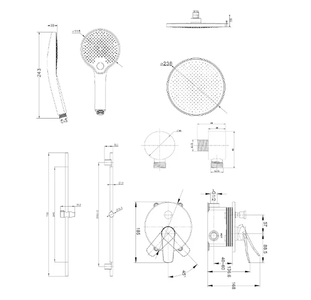 horní sprchu 238 mm se sprchovým ramenem 350 mm