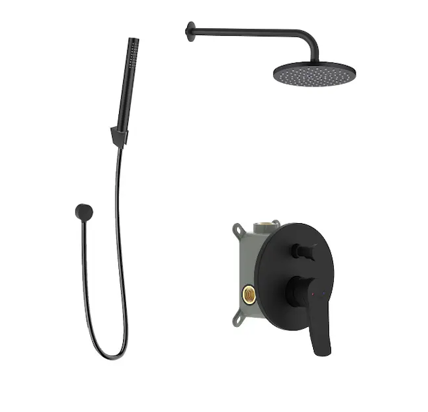 kielle Nefia - Sprchový set s baterií pod omítku, pro 2 spotřebiče, s příslušenstvím EcoSpare a tělesem, matná černá 20627SP124