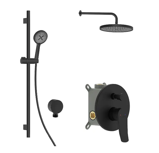 kielle Nefia - Sprchový set s baterií pod omítku, pro 2 spotřebiče, s příslušenstvím EcoSpare a tělesem, matná černá 20627SP74