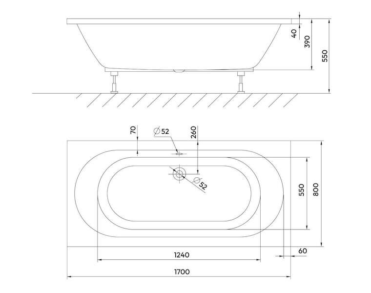 Vanová odtoková souprava a podpora vany nejsou součástí balení, je třeba je objednat zvlášť.