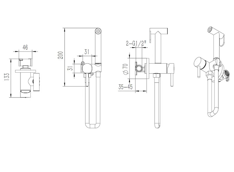 - s držákem sprchy, flexibilní hadicí a sprškou se STOP-ventilem