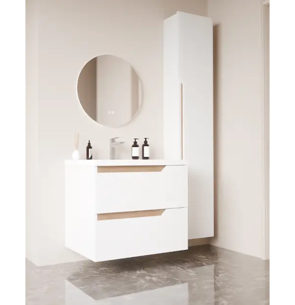 kielle Oudee - Skříňka s umyvadlem 60 cm, lesklá bílá/tmavý dub 50002S610
