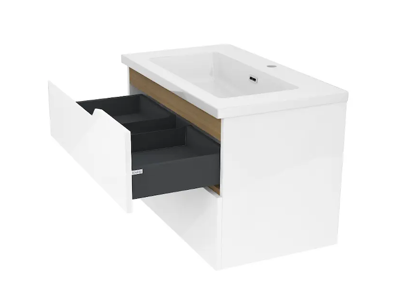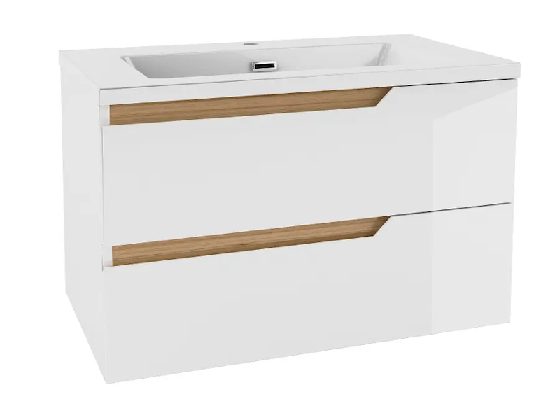 kielle Oudee - Skříňka s umyvadlem 80 cm, lesklá bílá/tmavý dub 50002S810