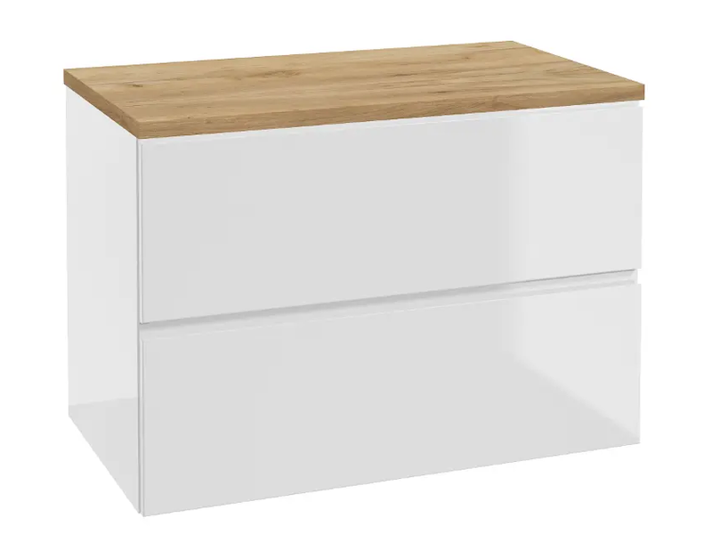 kielle Oudee - Skříňka včetně desky pod umyvadlo 80x55x46 cm, lesklá bílá/zlatý dub 50002S830