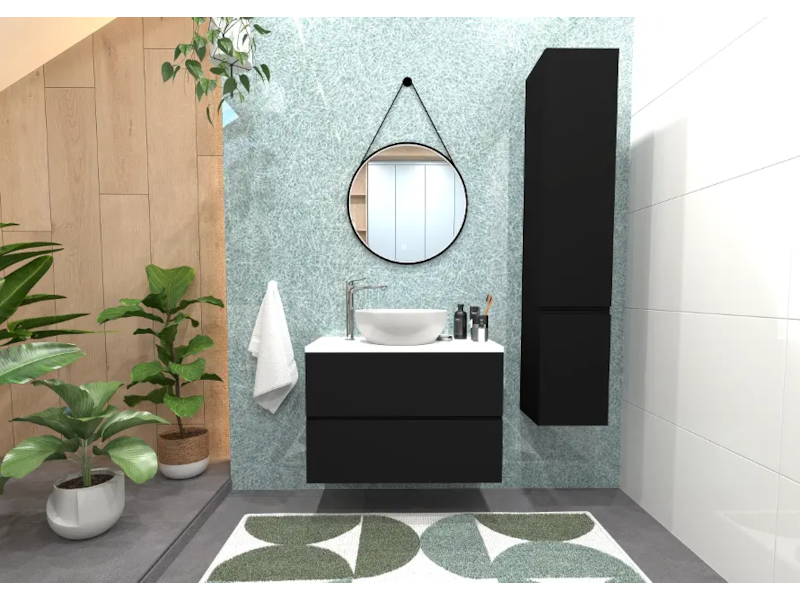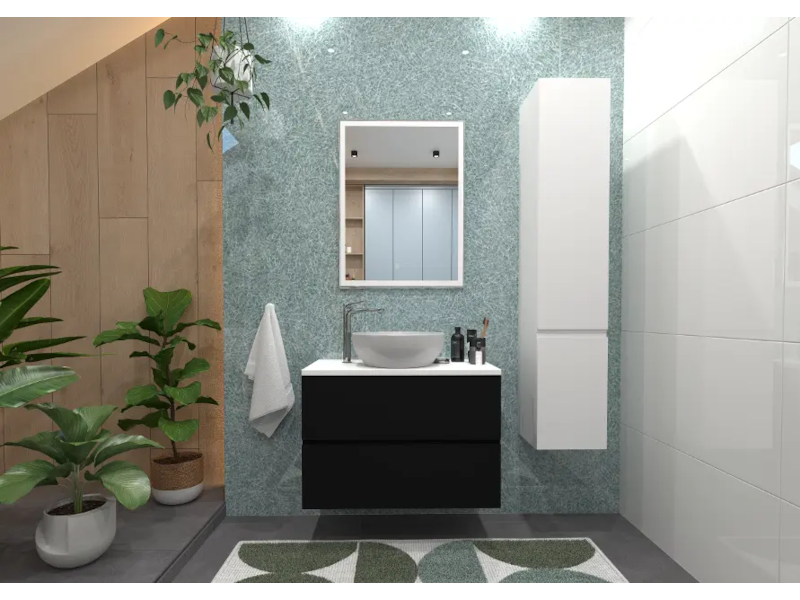 kielle Oudee - Skříňka včetně desky pod umyvadlo 80x55x46 cm, matná černá/lesklá bílá 50002S814