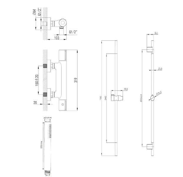 kielle Oudee - Sprchový set s termostatickou baterií, tyčí, hadicí a sprchovou hlavicí EcoSpare, chrom 20602SNT50 Expedice do 3-4 týdnů |