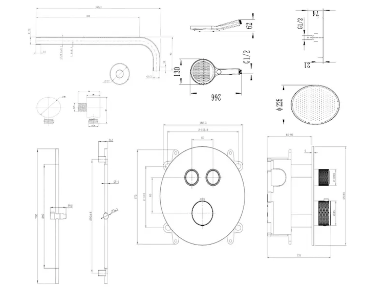 horní sprchu 225 mm se sprchovým ramenem 350 mm