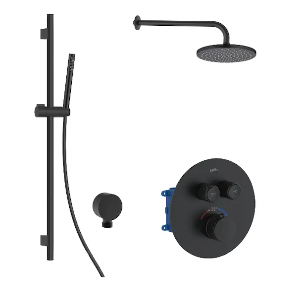 kielle Oudee - Termostatická baterie pod omítku, pro 2 spotřebiče, s příslušenstvím EcoSpare a tělesem, matná černá 20602SPT44